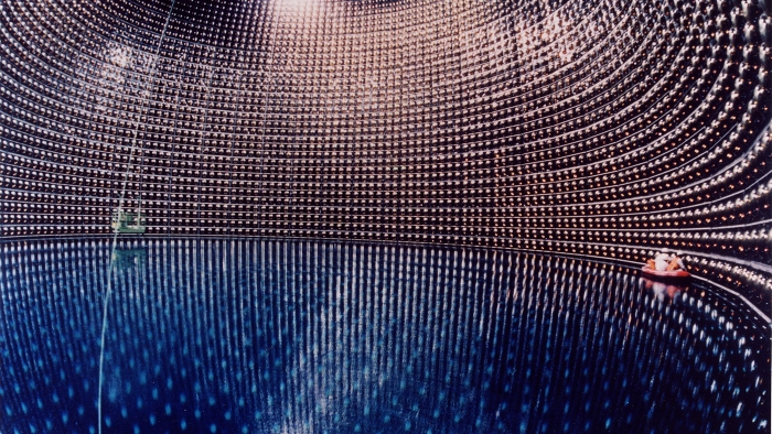 Super-Kamiokande, buried under about 1 kilometer of mountain rock in Kamioka, Japan, is one of the largest neutrino detectors on Earth. Its tank is full of 50,000 tons (about 13 million gallons) of ultrapure water, which it uses to search for signs of notoriously difficult-to-catch particles.